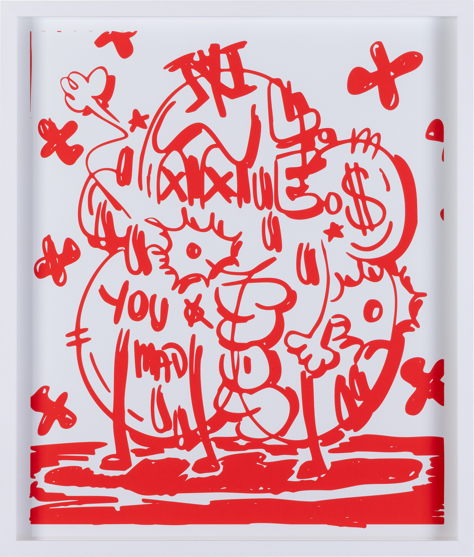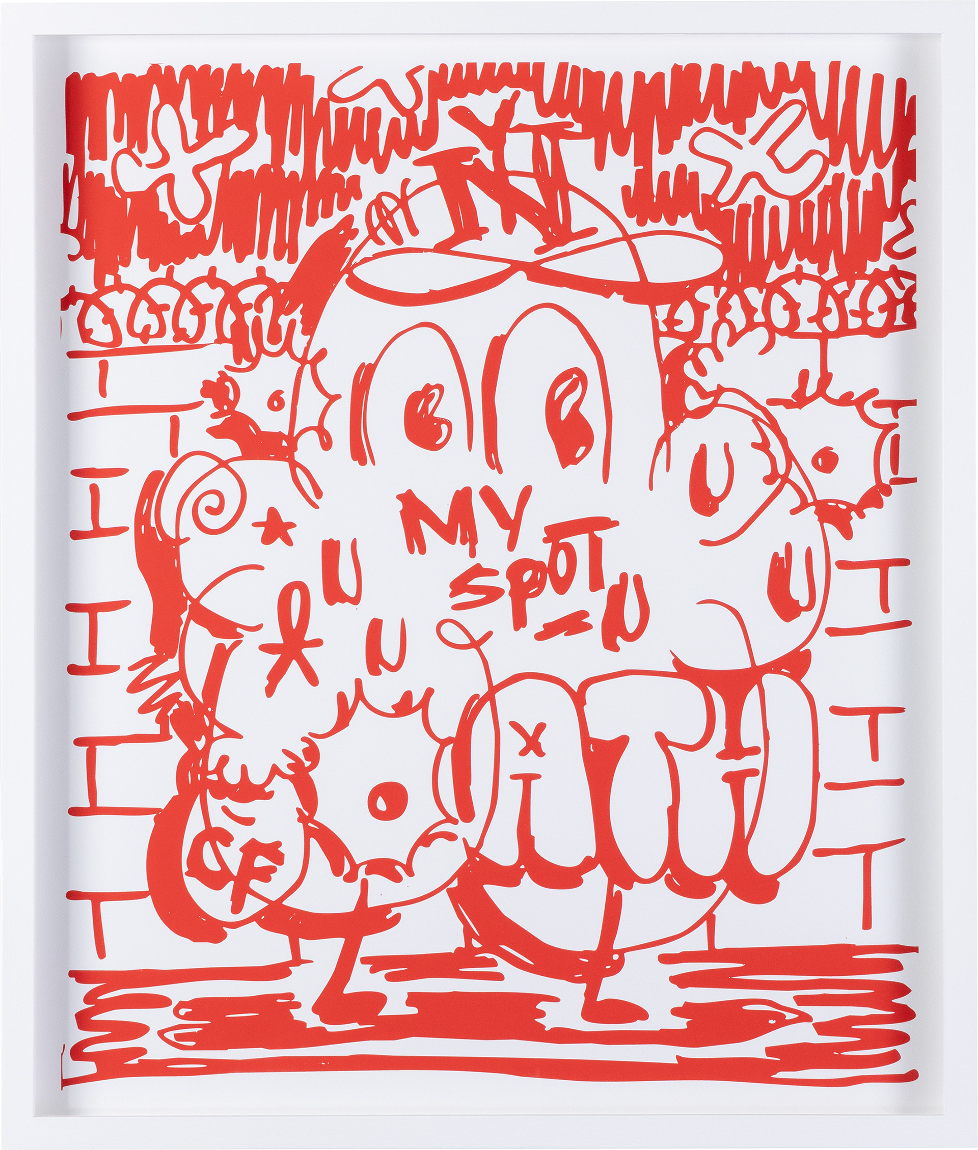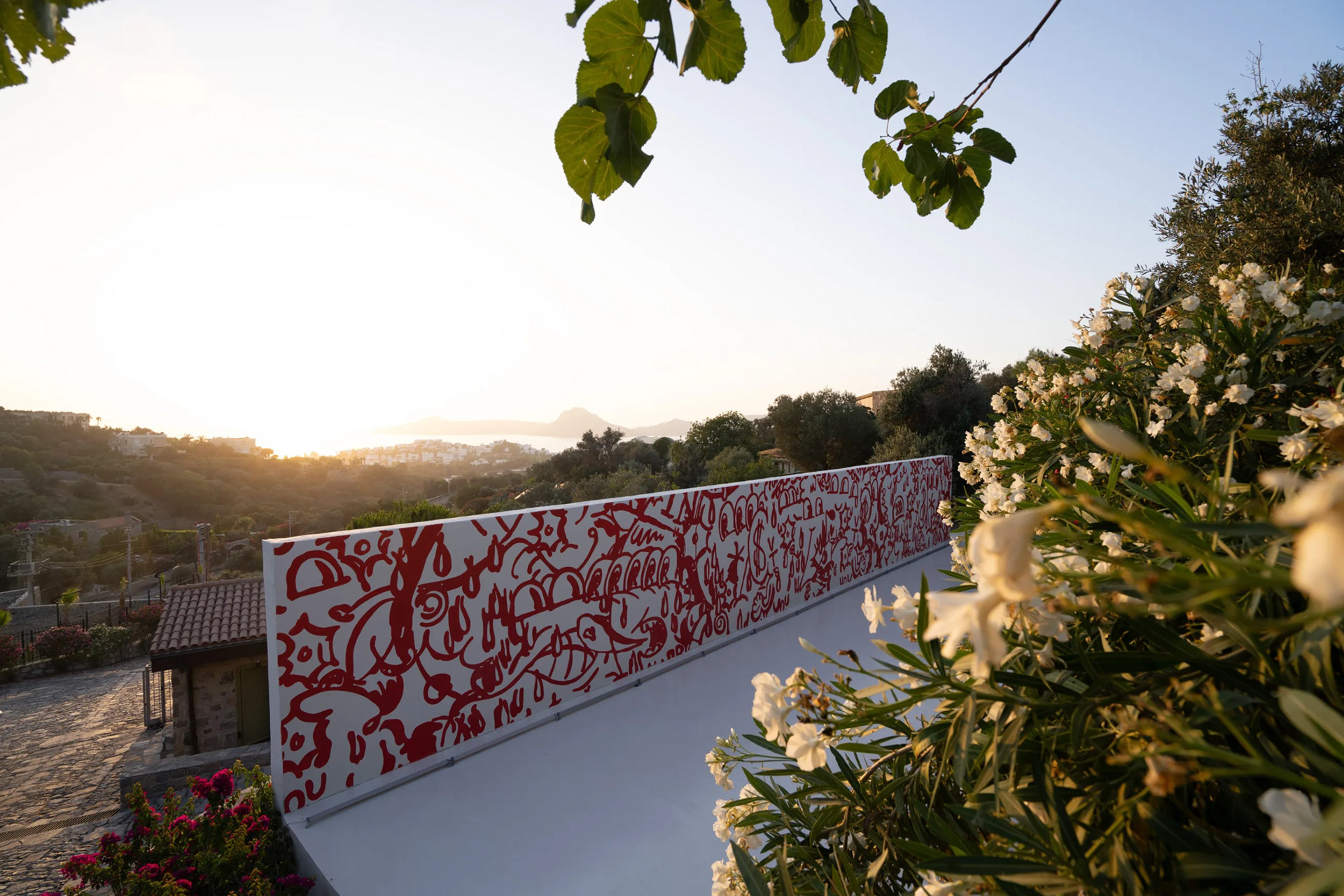 "Mural 3000 by Mehmet & Kazım located at PİLEVNELİ Yalıkavak. In Mural 3000, Mehmet & Kazım magnifies the characteristic Edding drawings impressively which are reminiscent of "throw-ups," a graffiti style that has shaped metropolises for over 50 years. Inspired by Francisco Goya's "Pinturas Negras," abstract expressionists from the 1950s, Paul Klee's "Geschwister," Pierre Soulages' works, and modern scenes from Brooklyn's Bushwick, Mehmet & Kazım's unique visual language captures the urban life scene and emotions. Infusing all their iconography with various symbols and impressions from New York streets, the duo brings New York's vibrant street language to Bodrum, this time in red."