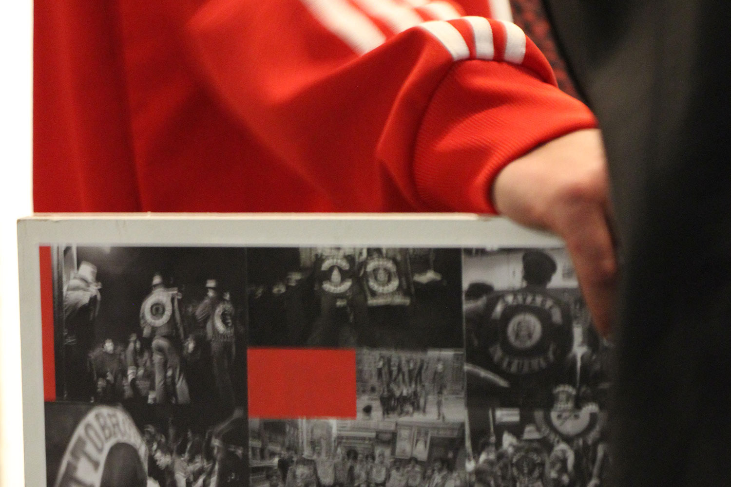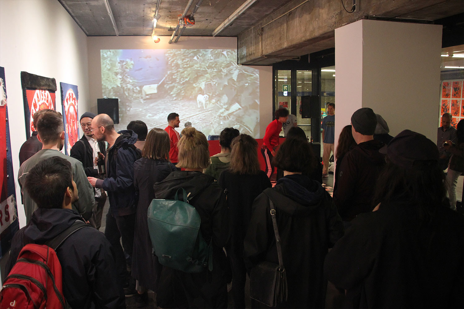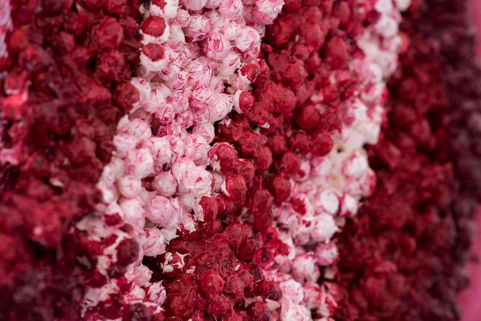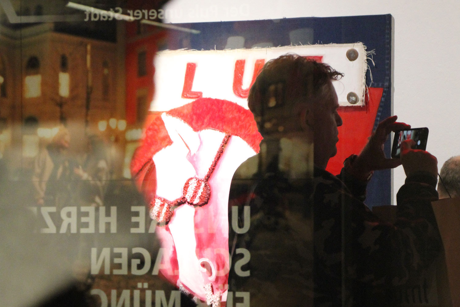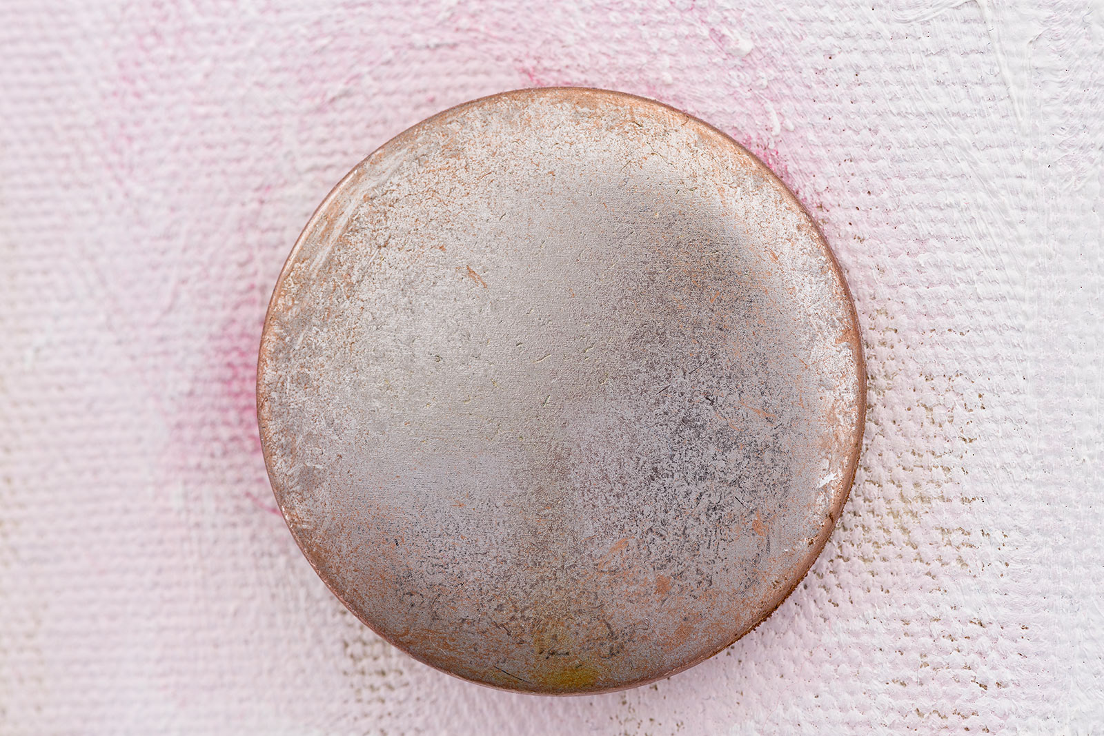 150 x 170 cm / 2018 / Oil on custom made denim combined with 3d printed buttons and rivets