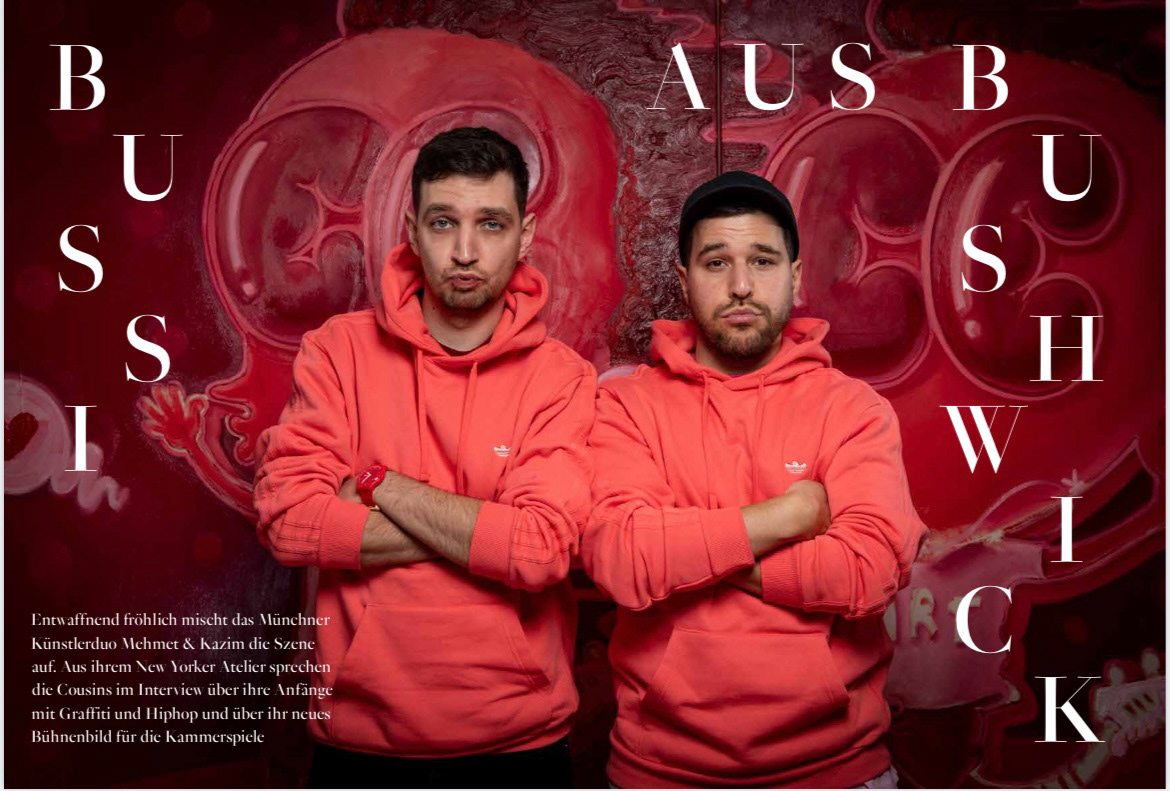 "In dieser WELTKUNST-Spezial-Ausgabe 04/22 »München Spezial« führen wir ganz inspirierende Gespräche mit bekannten Gesichtern der Stadt. Neben Otl Aicher und Joan Jonas lernen wir das Künstlerduo Mehmet & Kazim besser kennen und machen Ausflüge in ihre Jugend, die uns in die Münchner Graffiti-Szene führt. Die Kunst der beiden sympathischen Cousins spielt mit Klischees rund um Männlichkeit, Türkischsein oder Hip-Hop, ist interdisziplinär und reicht von Musik über Mode bis zum Theater."